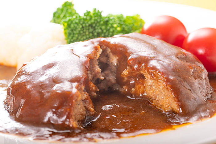 原材料名:大豆たんぱく加工品(国内製造)、食用植物油脂、玉ねぎ、発酵調味料、食塩、香辛料、ソース(野菜(たまねぎ(日本)、マッシュルーム、にんじん、セロリ)、とうもろこし油、トマトペースト、小麦粉、プルーンピューレ、砂糖、食塩、炒めたまねぎ、アーモンドペースト、酵母エキス、酵母エキス調整品、赤ワイン、おろしにんにく、おろししょうが、香辛料、酵母エキスパウダー)/糊料(メチルセルロース、カラギナン)、増粘剤(加工デンプン)、着色料(カラメル)、香料、(一部に小麦・アーモンド・大豆を含む)